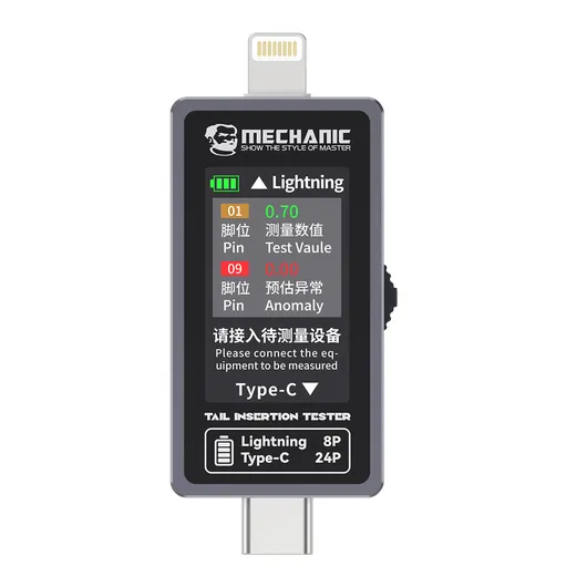 ميكانيكي T-824 Type-C إلى جهاز اختبار إدخال الذيل بشاشة عرض رقمية عالية الدقة